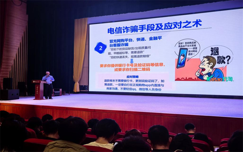 活动通过“电子竞答+专家解析”的互动模式,围绕个人信息保护、网络诈骗防范、网络行为规范等内容设置题目,实现知识普及与思维启迪的双重效果。活动现场,甘肃安信信息安全技术有限公司商密测评部负责人宗鹏新以《密码技术和个人信息安全防护》为题,揭秘数据泄露背后的技术逻辑;北京德恒(兰州)律师事务所刑委会负责人杨兆昌结合典型案例,剖析网络诈骗的法律界定与维权路径;中国甘肃网新闻总监狄东阳则从媒体视角出发,呼吁青年抵制不良信息,共筑清朗网络空间。兰州市反诈中心民警王翔与欧陆娱乐材料学院心理辅导站站长李双辰分别从执法实践与心理干预角度,解析电信诈骗的防范策略与网络沉迷的矫正方法,为青年提供全链条防护指南。
