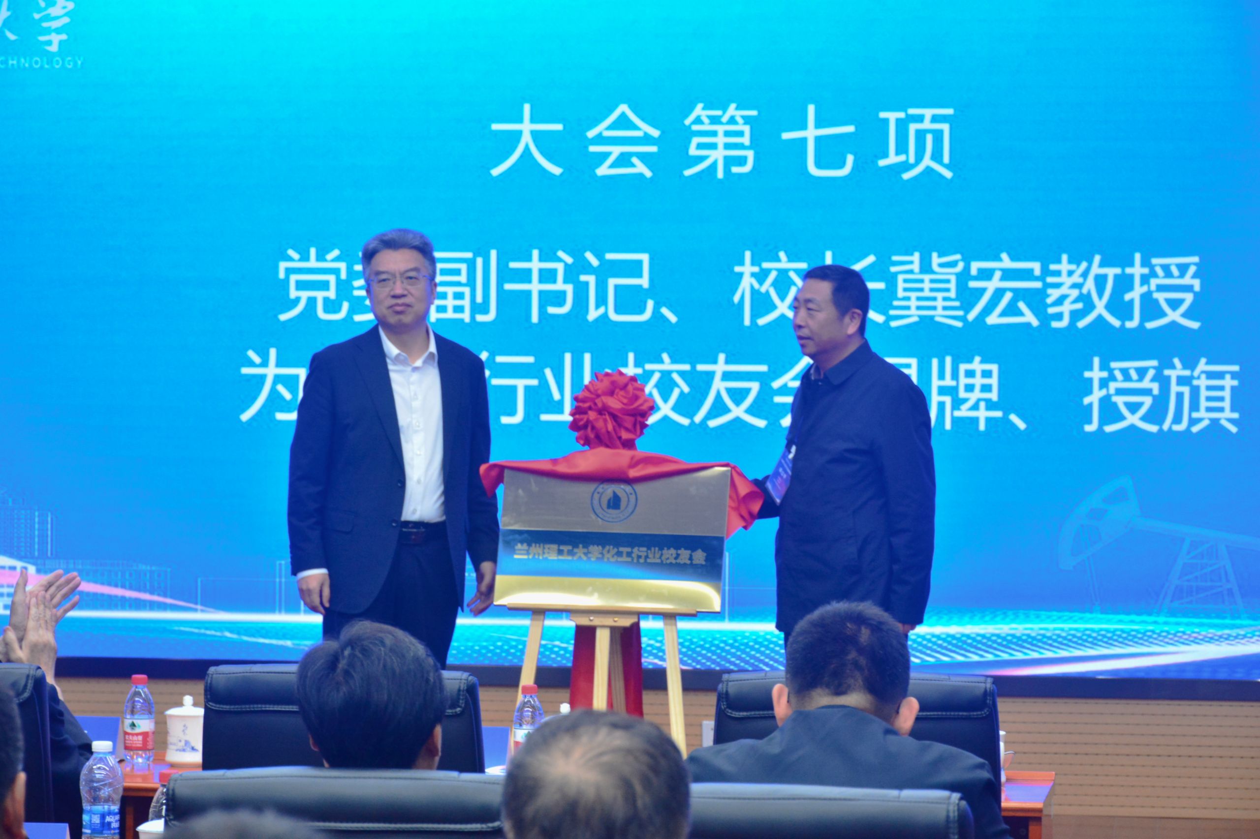 冀宏为化工行业校友会揭牌并授旗,他充分肯定了化工行业校友会成立的重要意义,勉励校友们继续弘扬母校“奋进求是”的校训,加强校企合作、推动科技成果转化,为化工行业的高质量发展和国家现代化建设贡献力量。
