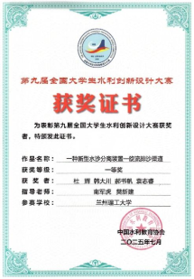 2025年7月,由中国水利教育协会和教育部高等学校水利类专业教学指导委员会主办,江苏科技大学承办的第九届全国大学生水利创新设计大赛在江苏镇江举办。赛事以“新质生产力驱动下的智慧水利创新设计”为主题,聚焦节水优先、人水和谐及新技术应用,吸引了全国160所高校的428组作品参赛,最终92所高校的168组作品晋级现场决赛。其中,能动学院南军虎教授指导的作品《一种新型水沙分离装置—旋流排沙渠道》荣获全国一等奖,土木与水利工程学院樊新建副教授指导的作品《榫启绿脉,水润荒戈——基于榫卯式输水渠的多梯级泵站溢水调蓄再利用系统》获得全国二等奖。