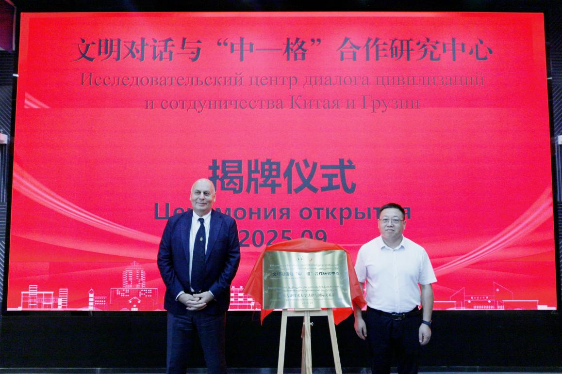 饶旭鹏与拉夫连季·古达瓦泽共同为研究中心揭牌。该研究中心的成立,既是响应国家“一带一路”倡议、深化中外人文交流的重要举措,也是我校马克思主义学院与格鲁吉亚技术大学法律与国际关系系合作走深走实的关键一步。