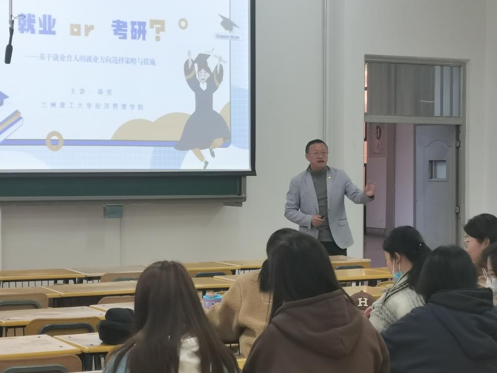 为了将“三抓三促”行动落地落实,2023年3月7日、3月13日,财务管理本科生党支部对大一、大二、大三3个班级召开学业讲座,由支部书记薛坚对如何进行学业规划(大一)、如何从学校到社会(大二)、如何选择考研or就业(大三)与不同年级的同学们进行了讲解与讨论。