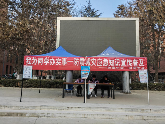 同时,校学生会、研究生会还积极开展防震减灾应急知识宣传普及工作。在彭家坪校区与兰工坪校区分别设立宣传服务点,向学生发放宣传资料,并通过现场讲解、演示等方式,向大家传授地震应急知识,提高公众的防震减灾意识和自救互救能力。