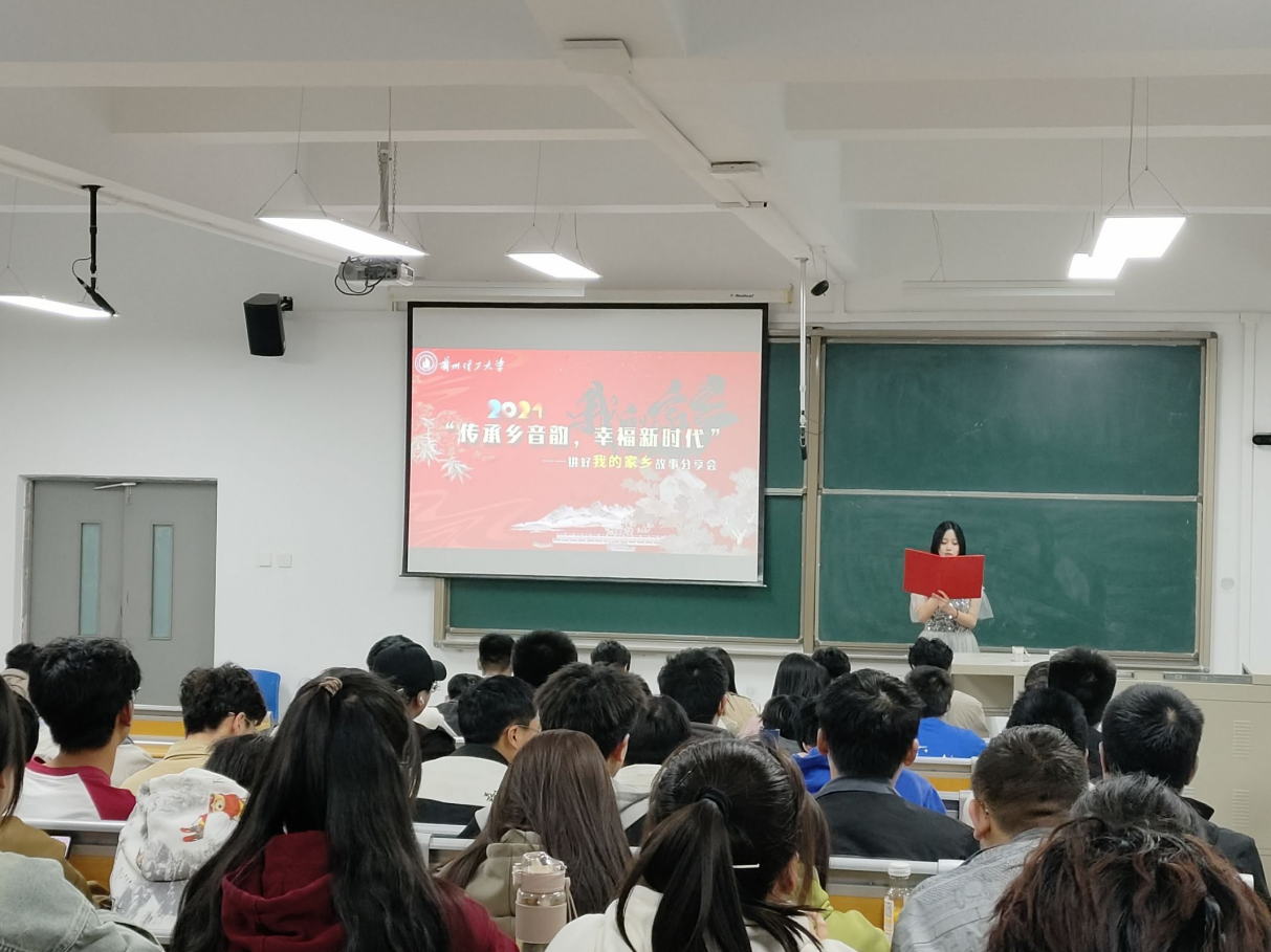 活动中,同学们紧紧围绕家乡在改革开放至今和乡村振兴以来的变化,通过一个又一个动人的故事,阐述了家乡所发生的翻天覆地的变化。电信学院的柴兆芳同学分享了“时代发展,武威的贫瘠沙漠变成了绿水青山”的故事。通过她的故事,同学们了解到了“六老汉”以及他们的后人一代接一代的治沙壮举。经过以“六老汉”为代表的三代林场职工的努力,八步沙不仅变成了绿水青山,还成为当地群众增收致富的“聚宝盆”。“六老汉”三代人坚持治沙斗沙,最终将八步沙发展为旅游业、特色农副业势头良好的典型地区,这样的动人故事正是“绿水青山就是金山银山”的最好诠释。石化学院的王懿婧同学分享了“欢迎来到我的‘嘉’乡”,带大家走近了嘉峪关一位被誉为“甘肃省教育一面旗帜”的人民教师闫桂珍。闫桂珍总是身着绿色暗花衬衣、黑色长裤、黑色布鞋,骑着一辆破旧自行车,奔波在一家又一家单位,戈壁炎热的太阳炙烤在她身上,她却丝毫不觉疲惫,依旧苦口婆心地向大家介绍着创立公益教育爱心助学协会的意义。据统计,闫老师累计帮助了甘肃省一万七千多名贫困学生走入大学,她的事迹在嘉峪关众所周知。大家评价闫老师是河西走廊那脚踏实地,韧柔坚强的红柳。王懿婧同学在分享中说:“说起红柳,我不禁想到我们兰理工的红柳精神,而作为新时代青年的我们,更应该将红柳之精神铭刻于心,艰苦奋斗,自强不息,要把‘不可能’变成‘一定能’。”其他同学从家乡美景、特色美食、文化风俗等角度出发,依次上台介绍自己的家乡,展示家乡独特文化,带领同学们品味来自祖国各地的乡土人情,城市魅力以及文化活力。学生们富有感染力的演讲,将那份纯真的乡土气息融入历史长河之中,字里行间无不体现着对家乡的无限热爱。
