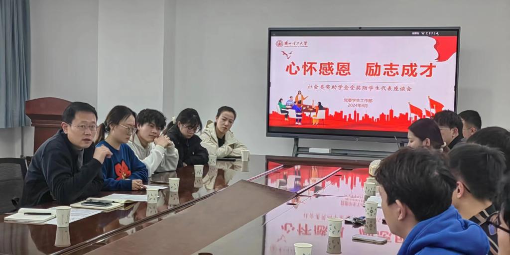赵炜对本次座谈会进行总结,表达了对设立奖助学金的企业、校友和爱心人士的感谢。他说,一是要以德为先,饮水思源,常怀感恩之心,励志成长成才,反哺祖国和社会;二是要争做榜样,传递正能量,充分发挥典型示范和引领作用,助力学校学风建设;三是要锚定目标,规划未来,把握住时代发展的大好机遇,在青春的赛道上跑出当代青年的最好成绩。