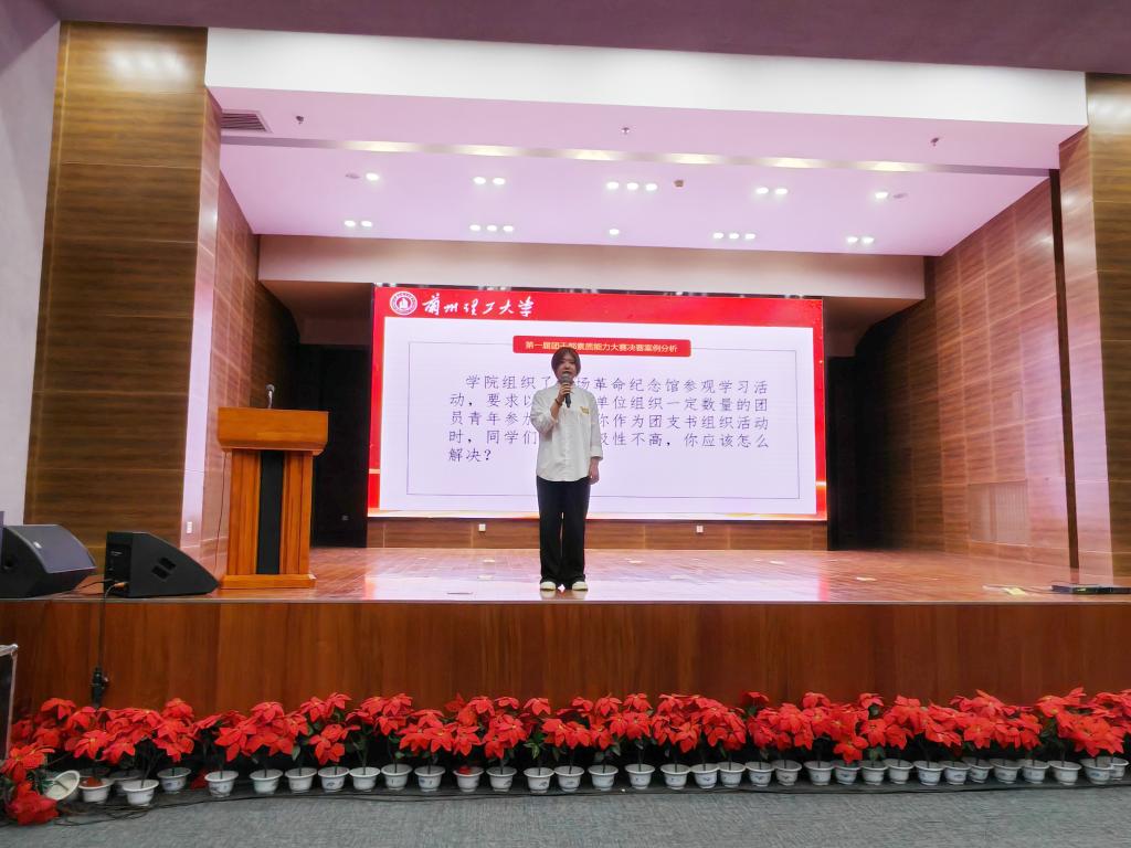 比赛结束后,校团委副书记作点评。她对参赛选手的表现给予肯定。她认为本次比赛充分发挥了学生团干部的引领作用,切实达到了以赛促学、以赛促建的良好效果。她希望团干部认真学习党的创新理论,坚定理想信念,积极发挥模范带头作用,成为广大团员青年的表率,做大学生思想政治教育工作的主力军,为我校共青团工作高质量发展贡献青春智慧与力量。