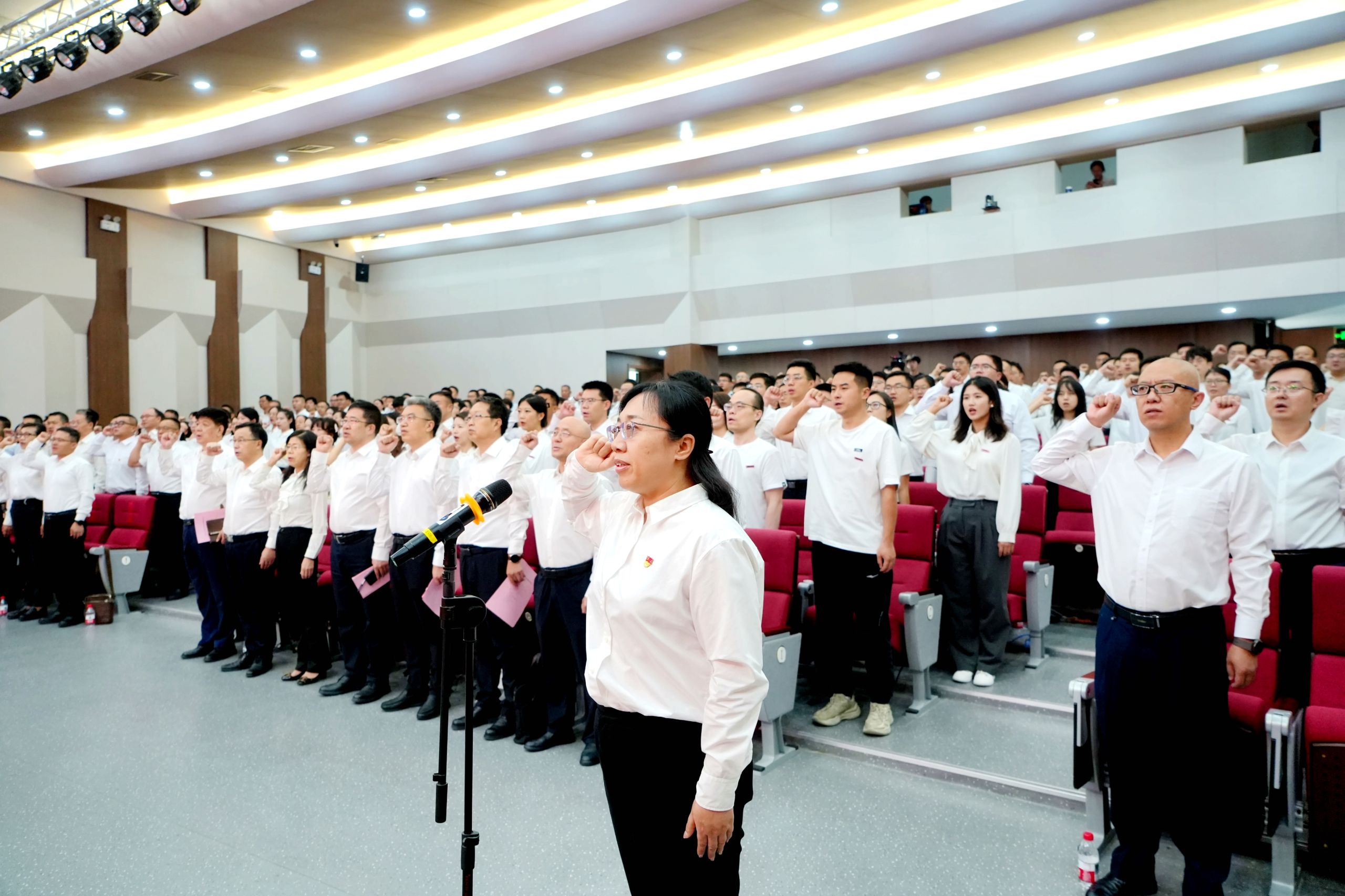 大会在雄壮的国歌中拉开帷幕。新入职教工在“甘肃省园丁奖”获得者、材料科学与工程学院南雪丽教授带领下,高举右拳、庄严宣誓,用铿锵有力的誓言表达了投身教育事业、坚守育人初心的坚定决心。